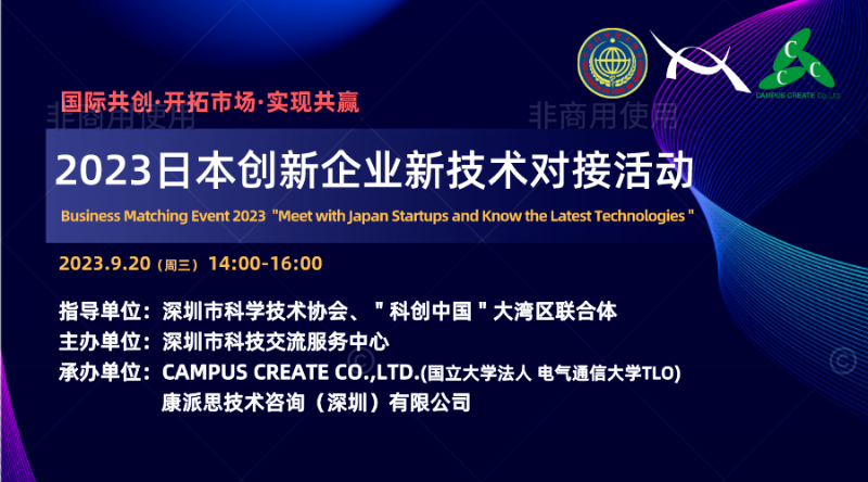 9月20日下午,在深圳市科学技术协会、“科创中国”大湾区联合体的指导下,由深圳市科技交流服务中心主办的2023日本创新企业新技术对接活动成功举办,活动在中日线上同步直播举行,中日相关行业企业家、专家及投资人等相聚云端。
